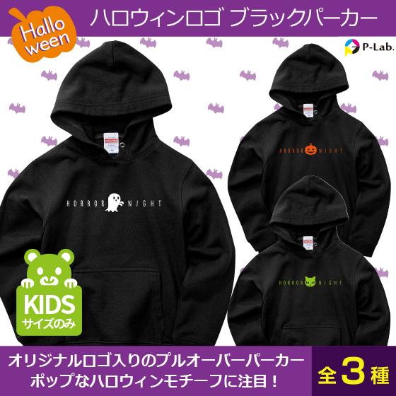 ハロウィン 子供 グッズ パーカー イラスト 衣装 かわいい キッズ 送料無料 本体色ブラック 綿100 10 0oz ハロウィンロゴ R 01 オリジナルプリントウェアのp Lab 通販 Yahoo ショッピング